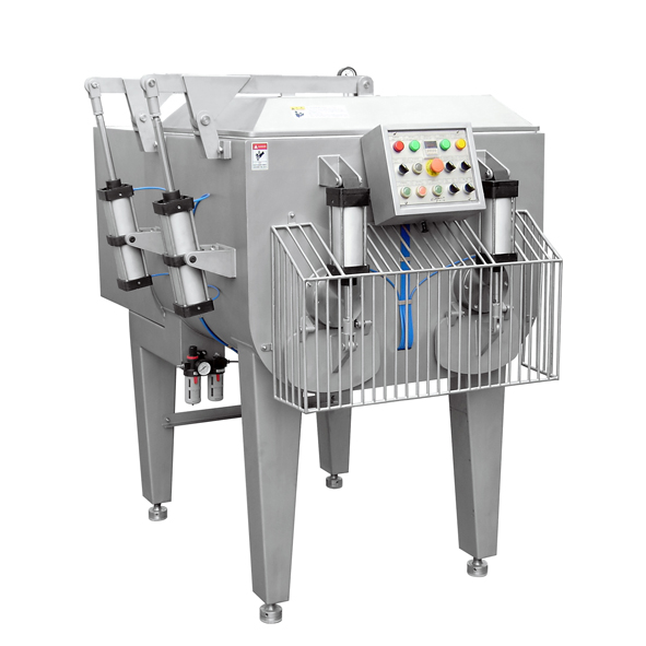 BVBJ-500真空搅拌机为双轴搅拌,设有正反转和暂停时间装置,挤压式推进,气动出料,上盖及出肉口均装有安全保护装置。不同的搅拌浆叶可根据用户需求提供。