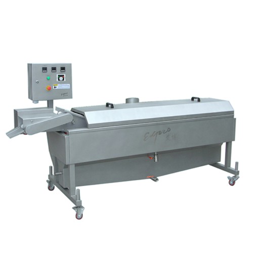 BYZJ-V-200 油炸机采用不锈钢网带(进料前段为板带)变频无级调速输送、自动油温控制,通过变换不锈钢网带结构可适应于鸡块、鱼排、肉丸、肉饼、春卷等方便调理食品的油炸。特殊设计的油水分离系统,使油炸过程中产生的小颗粒自动沉淀至下层水槽中,延长炸油的使用寿命。上盖及炸带机架可整体提升,方便清洗,并装有安全保护装置。
